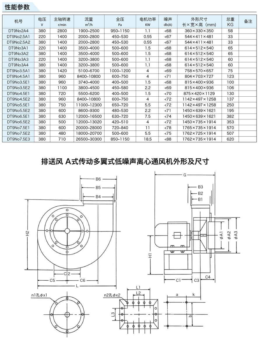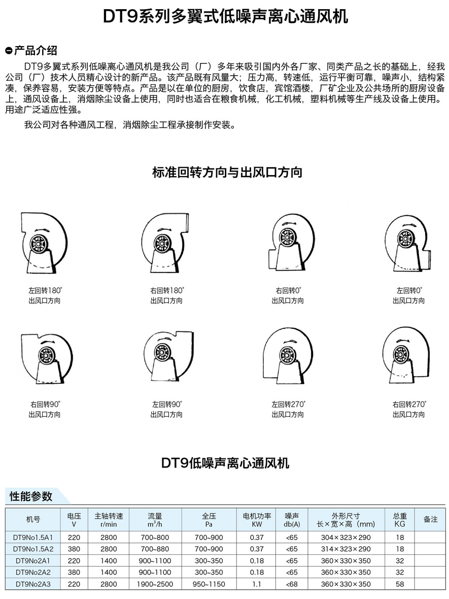 DT-9系列多翼式低噪聲離心通風(fēng)機(jī)